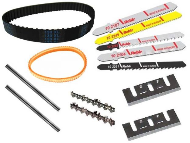 У нас всегда в наличии ножи на рубанки, пилки для лобзиков, цепи и шины для бензопил, а также ремни и щетки для любого типа инструмента.